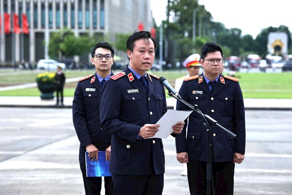 Trước Lăng Chủ tịch Hồ Chí Minh, với lòng thành kính và biết ơn vô hạn với vị Lãnh tụ thiên tài của cách mạng Việt Nam, Anh hùng giải phóng dân tộc, Danh nhân văn hóa thế giới, đồng chí đồng chí Nguyễn Tuấn Anh, Bí thư Đoàn TNCS Hồ Chí Minh VKSND tối cao đã đọc lời báo công dâng Bác. |