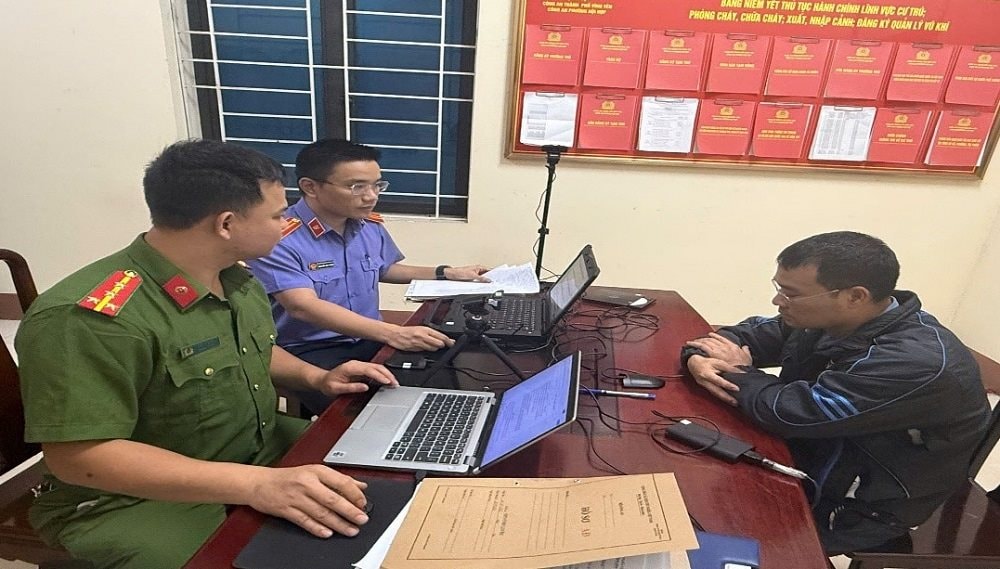 Hình ảnh đối tượng Nguyễn Văn Duy làm việc với cơ quan tiến hành tố tụng. |