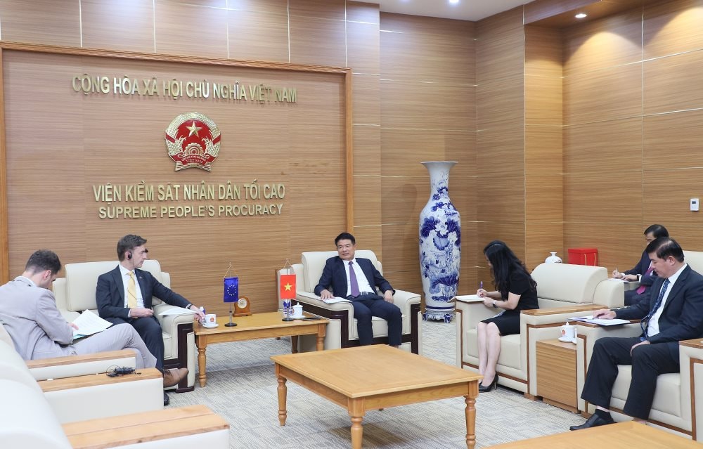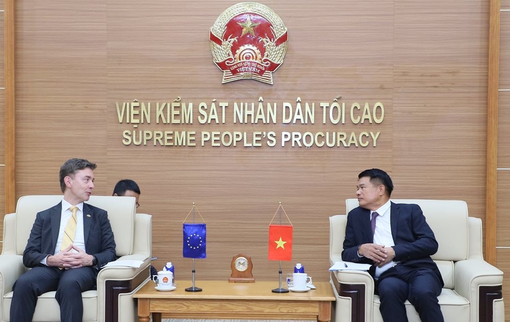 Nhân dịp này, Viện trưởng VKSND tối cao Nguyễn Huy Tiến trân trọng cảm ơn Đại sứ EU và các đồng nghiệp đã quan tâm, hỗ trợ thiết thực đối với VKSND tối cao cũng như hệ thống tư pháp, pháp luật Việt Nam; đồng thời bày tỏ tin tưởng quan hệ hợp tác giữa Việt Nam và EU thời gian tới sẽ tiếp tục phát triển toàn diện, bền vững.